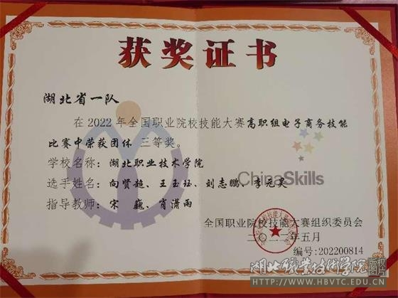 7月30日至31日,由教育部等36个部门联合主办的2022年全国职业院校技能大赛高职组·电子商务赛项在安徽芜湖举行,由财经与旅游学院宋巍和肖潇雨教师指导的李元昊、刘志鹏、向贤超、王玉珏4名同学代表湖北省参赛,经过两天激烈角逐,4名同学组成的团队以全国第21名的成绩荣获三等奖。