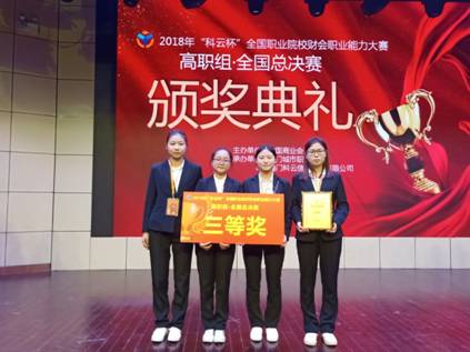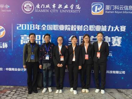12月2日,2018年“科云杯”全国职业院校财会职业能力大赛圆满落幕。由中国商业会计学会主办,厦门城市职业学院和厦门科云信息科技有限公司承办的“科云杯”全国职业院校财会职业能力大赛(高职组)在厦顺利举办,我院谢惠敏、刘爱华老师指导的四名学生钟美玲、陈庆、刘雨婷、刘锦菲荣获全国三等奖的优异成绩。