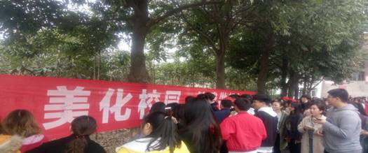3月14日下午,校园春意盎然,旌旗猎猎,pg电子官方网站团总支在文华楼前举行“美化校园 从我做起”志愿服务签字仪式。财学院党总支副书记兼副院长张银平、辅导员谢毅哲以及2017级全体同学参加了这次活动。