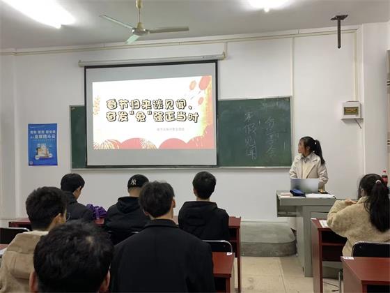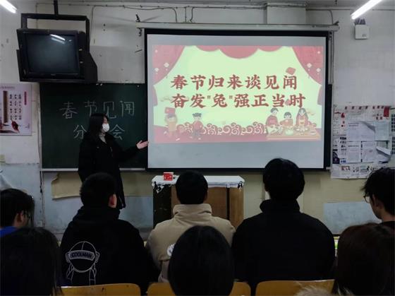 为进一步加强班风学风建设,增进同学们之间的沟通交流,了解不同地区的春节习俗、家乡变化,2月12日晚,财经与旅游学院各班级开展了“春节归来谈见闻,奋发‘兔’强正当时”主题报告活动。