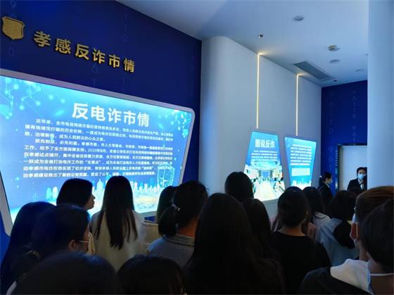 5月10日下午,在学校组织领导下,财经与旅游学院50名学生前往孝感市反电诈教育体验馆参加反电诈宣传教育活动。同学们在讲解员的引导下学习反电诈知识,沉浸式体验反诈小游戏,身处最真实的虚拟场景中识破电诈的行骗伎俩。