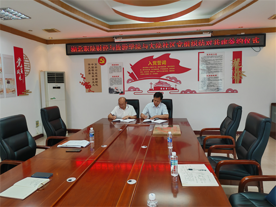 财经与旅游学院党总支书记罗安文代表学院党总支与大院社区党委杨耀华书记签订了党组织“结对共建”协议书,双方还举办了“党组织结对共建单位”授牌仪式。财经与旅游学院学工党支部与孝南区广场街大院社区居委会党支部成立结对共建党支部,结对开展互联互动,在资源共享、事务共商、活动共联、文化共融等方面共驻共建。学校鼓励和组织党员干部和在校大学生走进社区,积极参加社区内公益性、群众性工作,参与社区志愿服务活动,主动配合社区开展社区家庭教育、青少年心理健康辅导工作和关爱社区老人活动,结对给以帮助。