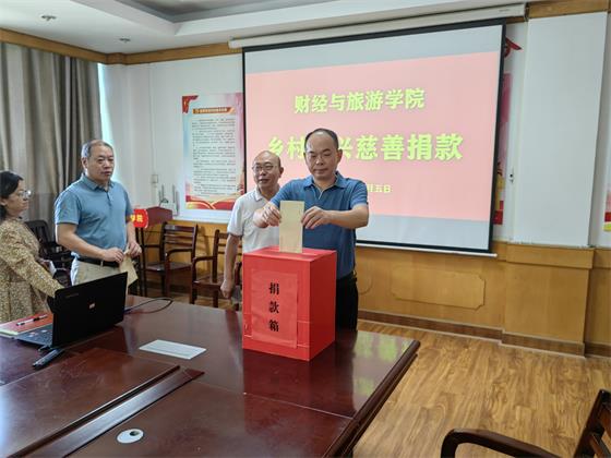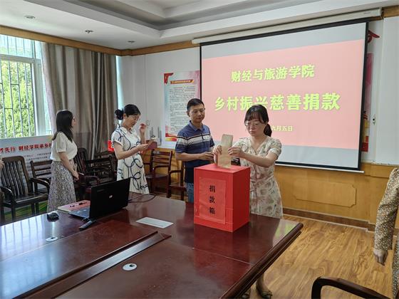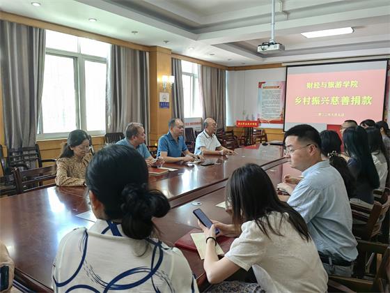 为了助力孝昌“奋进30年”慈善捐赠活动,财经与旅游学院响应学校号召,于2023年9月5日在文华楼2楼会议室举行助力乡村振兴慈善捐款,捐款分为线上线下两种模式,学院管理团队及部分教师代表参加了现场活动。