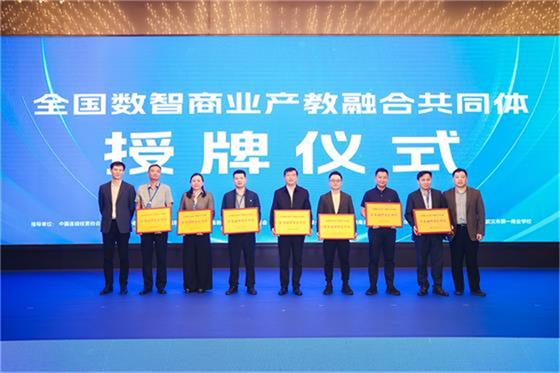 会议公布了全国数智商业产教融合共同体第一届理事会名单,并为相关单位授牌,学校当选为常务副理事长单位。上午的成立大会后,产教融合专家、中国教科院聂伟博士作了主旨报告,银泰集团做了行业人才需求趋势分享。下午,还举行了共同体发展研讨和工作任务讨论,并进行了首批产教融合共同体合作院校签约仪式。