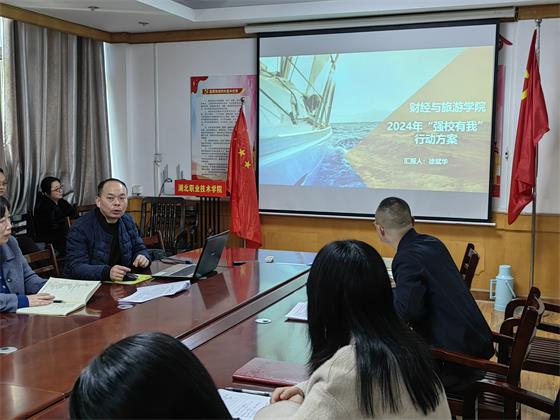 财经与旅游学院于3月20日下午在文华楼201会议室组织开展了“学习郭书记在2024年全校教工大会上的讲话暨强校有我工作部署”主题活动。学院全体教师参加了会议,会议由财经与旅游学院长徐斌华主持。