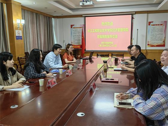 4月28日上午,长江工程职业技术学院经济管理学院院长马超、副院长熊俐以及教师代表等一行4人莅临我院参观交流,财经与旅游学院院长徐斌华、副院长汪行光、电子商务教研室主任宋巍、大数据会计教研室主任郑敏热情接待,并对长江工程职业技术学院经济管理学院各位领导的莅临表示热烈欢迎。