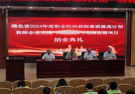 8月9日,由我校承办的2024年湖北省职业院校教师素质提高计划项目教师企业实践(网络营销与电商直播)培训班结业典礼在学校西区文博馆学术报告厅举行。pg电子官方网站党委委员、副校长杨立明、财经与旅游学院院长徐斌华、党总支书记罗安文、副院长汪行光出席。结业典礼由徐斌华主持,来自全省五十余所中、高职院校的60名骨干教师参加结业典礼。