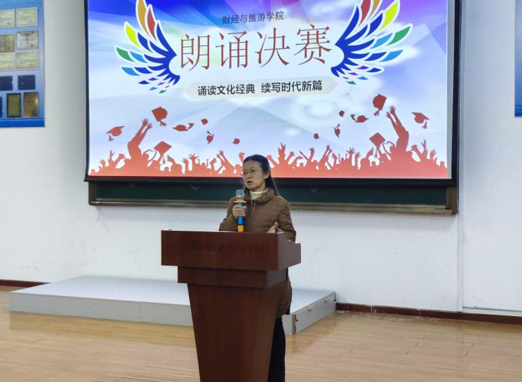 12月5日下午,财经与旅游学院在西区文华楼阶梯教室举办了一场主题为“诵读文化经典,续写时代新篇”的朗诵比赛,旨在激发学生对传统文化的热爱,增强民族自豪感和爱国情怀。财经与旅游学院副院长陈卫红、全体专兼职辅导员及300余名学生参加了此次活动。