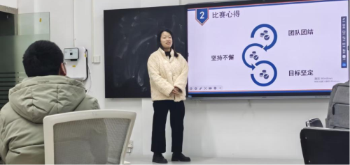 “挑战杯”国赛金奖获得者陈孝艳同学分享了自己的比赛心得。她结合自身参赛经历,讲述了从项目构思、计划书的撰写、团队组建到克服重重困难最终夺冠的艰辛历程,分享了宝贵的实战经验与应对策略。陈孝艳同学的故事充满激情与智慧,极大地鼓舞了在场同学,让大家深刻认识到坚持与创新的力量,也为同学们提供了可借鉴的成功范式。