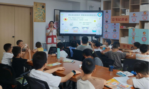 为助力青少年科学认知身体发育进程,消解成长阶段因生理变化产生的困惑、不安,引导其树立积极健康的身心发展观念,7月21日,pg电子官方网站财经与旅游学院“锋”华正茂志愿服务队携手广场街道晒书台社区、孝南区红十字会、孝感市中医医院,为晒书太社区暑期爱心托管班青少年带来了一场兼具科学性与趣味性的生理健康知识课堂。