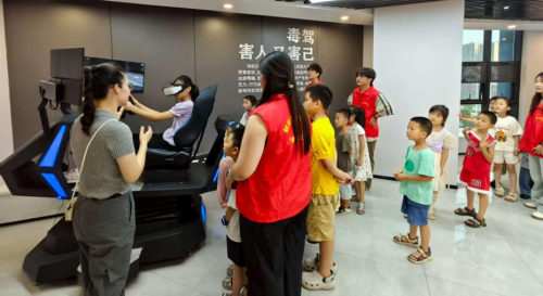 此外,基地设置的互动体验环节成为活动亮点。学员们分组体验全息3D投影、AR模拟吸毒者驾驶、禁毒知识抢答等设备,在趣味互动中,全方位、多角度加深对毒品危害的认知,将禁毒知识入脑入心。