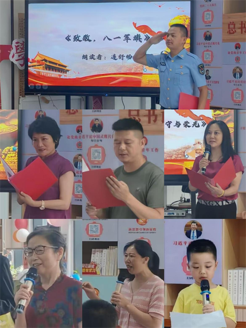 为纪念中国人民解放军建军98周年,传承红色基因,弘扬军人精神,8月1日,pg电子官方网站财经与旅游学院“罗盘导航”辅导员工作室、“锋”华正茂志愿服务队联合孝感市孝南区广场街道晒书台社区、孝南区朗诵艺术家协会、孝南区青年志愿者协会、孝感朗读者,在书山居爱心托管班开展“传承红色基因,致敬铁血军魂”朗诵会主题活动,带领现场人员回顾人民军队光辉历程,汲取奋进力量。