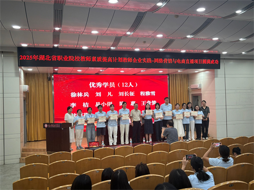 八月的孝感,槐荫依旧,澴水长流。在省厅市局的大力支持、学校领导的悉心指导、各位专家的倾囊相授以及全体参训学员的积极参与下,湖北省2025年教师素质提高计划教师企业实践—网络营销与电商直播项目圆满达成预期目标。相信所有学员在教育的沃土上初心不改,步履不停,继续耕耘,绽放光彩。