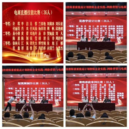 展示成果4:电商直播技能展示中,老师们从选品、话术到互动、控场,打造出一场场精彩的电商直播。每一场直播者凝聚着大家对直播流程的精心设计,也体现了学员在电商直播学习中的努力与进步。