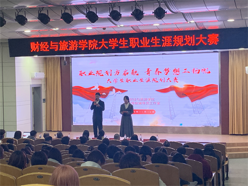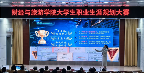 随后,选手们按照抽签顺序依次登台,通过精心制作的PPT,从容自信地展示了自己的职业规划蓝图。来自财经类专业的学生,结合大数据、人工智能等前沿技术,精准分析了目标职业的发展前景,并制定了清晰的阶段性实施路径;电商专业学生结合大数据,明确了如何紧密联系社会需求提高自己的专业技能;而旅游管理专业的学子们,则着眼于文旅融合与新业态,立志成为智慧旅游策划师、高端定制旅行管家或文旅项目运营官,其富有创意的规划和对行业热点的敏锐洞察赢得了阵阵掌声。