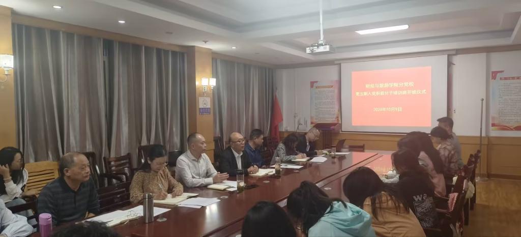 10月9日晚,财经与旅游学院分党校在文华楼二楼会议室举办了第五期入党积极分子培训班开班仪式。学院党总支书记罗安文,学院院长、党总支副书记徐斌华,学院党总支委员、学工支部书记陈卫红,学院组织员黄曙光,学工办主任王峰,团总支书记张星月及全体入党积极分子参加了开班仪式,仪式由党总支委员、学工支部书记陈卫红主持。